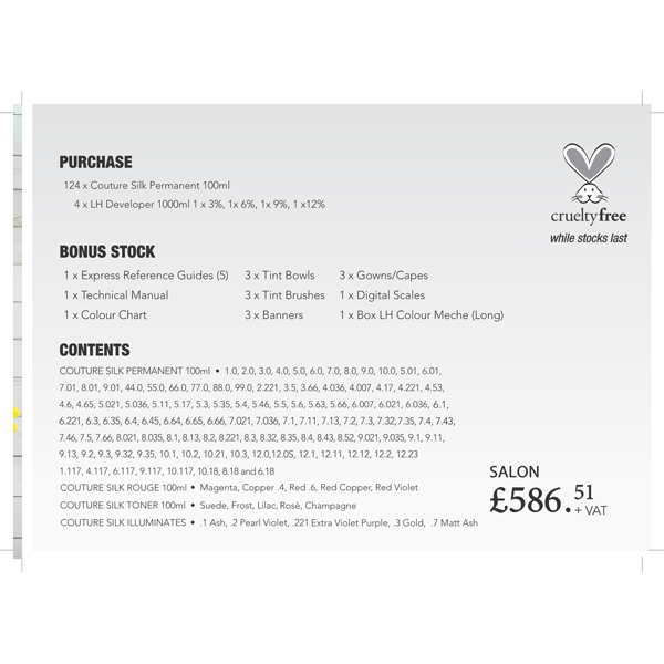 PLEASE NOTE THIS IS AN INTRO KIT AND CAN ONLY BE PURCHASED ONCE AS IT IS DESIGNED AS AN INTRODUCTION TO THIS COLOUR RANGE. IF IT IS ORDERED MORE THAN ONCE WE MAY HAVE TO CANCEL THE ORDER.