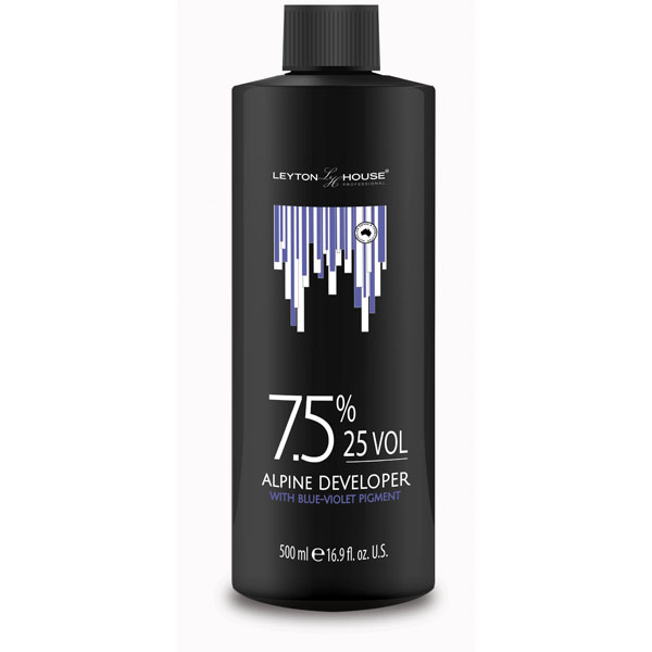 Exclusive Alpine Developers 4.5% (15vol) & 7.5% (25vol) features a distinct blue-violet pigment specially designed to enhance toning effects during the lightening process and neutralising underlying warmth.