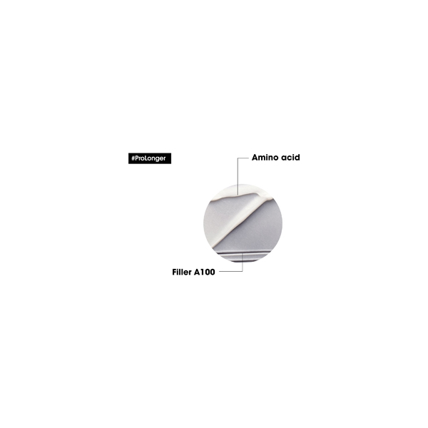 When used with the Pro Longer shampoo for long hair, there is a hair breakage reduction*. The Filler A-100 technology used is patented to L'Oréal Professionnel, and it works by penetrating the fiber core to plump and thicken the hair from the inside.